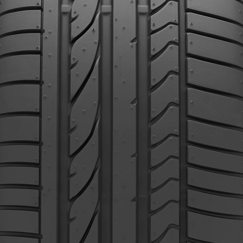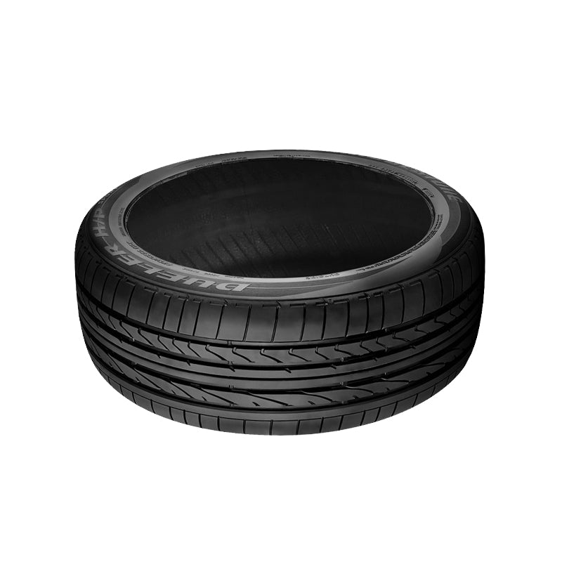 The Bridgestone Dueler H/P Sport RFT (MOExtended) is a high performance, summer tire made for SUV and 4x4 vehicles. This model is the original equipment tire of select Mercedes-Benz vehicle models. The model is a run flat tire, which has a limited temporary performance after air pressure loss. In such cases, the tire can be driven on for 50 miles up to the speed of 50 mph as the stronger construction and sidewalls withstand the weight of the vehicle and its passengers. This enables the driver to safely arrive at a location where they can change or fix the damaged tire. These tires are manufactured for vehicles without space for a spare tire. They cannot be used together with non-run flat tires on the same vehicle.