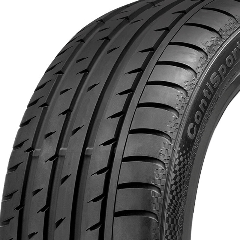 The Continental ContiSportContact 3 is a max performance summer tire with a highway tread manufactured for sporty passenger vehicles, such as sport coupes and luxury sedans. This model has excellent wet and dry traction thanks to the tread pattern and silica-based compound, but the tire will not perform well in winter conditions. The circumferential grooves in the tread pattern help evacuate water from beneath the tire, increasing its resistance to hydroplaning. This also greatly enhances the tire’s wet traction.