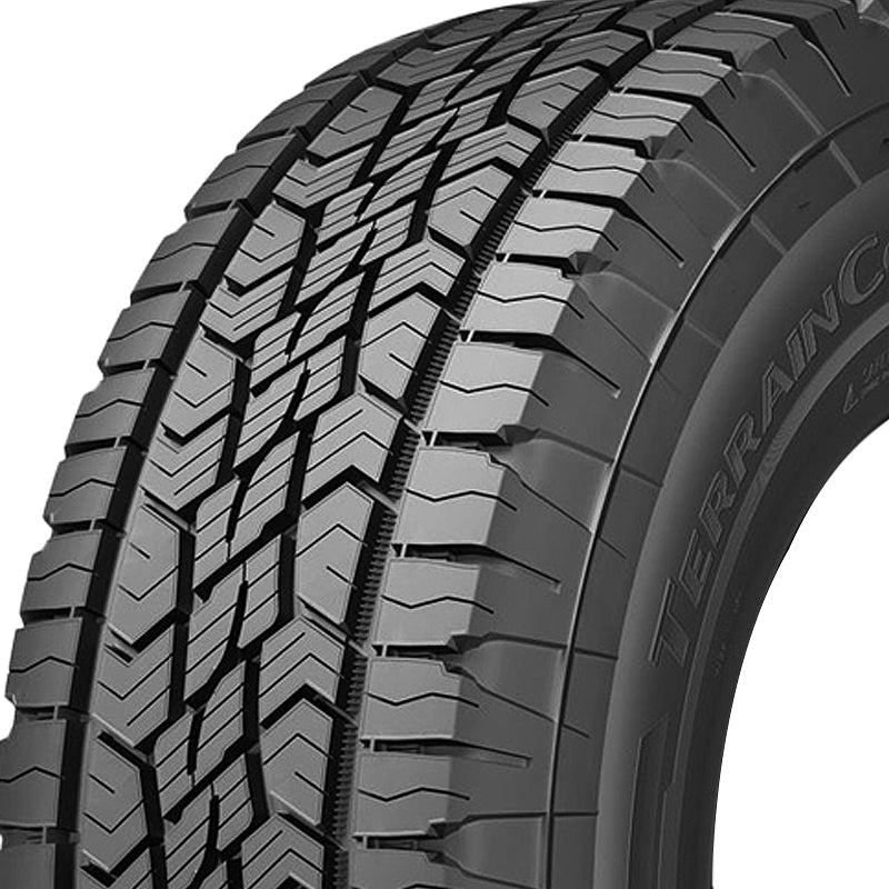 The Continental TerrainContact A/T is an off-road all season tire manufactured for SUV, crossover and light truck vehicles. Continental offers a 60,000 mile treadwear warranty with this model. The tire has great all weather traction due to the +Silane additives in the tire compound that grip the road in dry, wet and even winter conditions. The traction grooves increase the tire’s grip in winter situations, like snow and ice. The full depth sipes ensure that the model will not lose its good traction with the tread wear as the sipes are not just visible on the top of the tread. The wide tread grooves actively resist hydroplaning by eliminating water from below the tire footprint. This makes the tire safer to use all year.