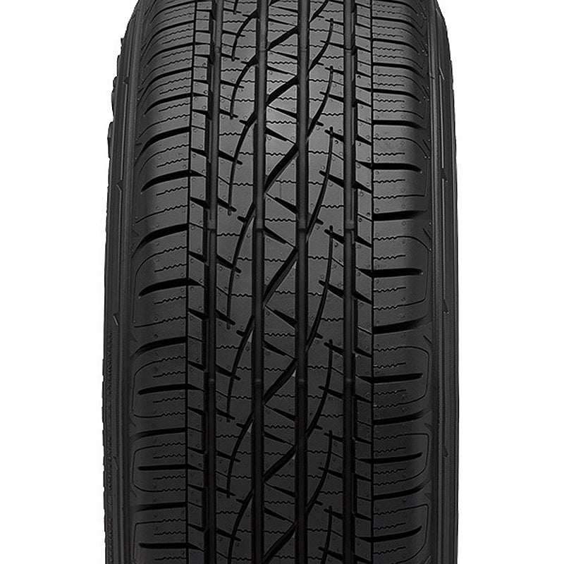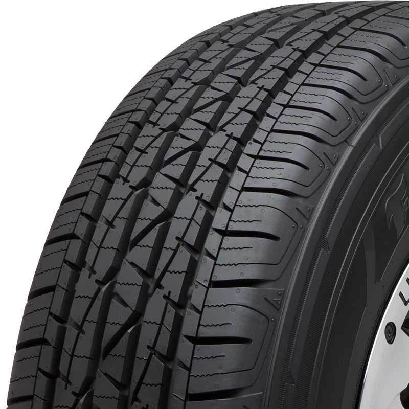 The Firestone Destination LE2 is a highway terrain, all season tire made for crossover vehicles, SUVs light trucks. This model has some touring passenger vehicles sizes as well. Firestone offers a 60,000 mile treadwear warranty. The detailed tread pattern promotes excellent all weather traction. The continuous closed shoulder tread block design improves the dry performance. The circumferential grooves, zigzag siping detail and the sweeping grooves prevent hydroplaning and boost the wet weather traction by eliminating water from below the tire footprint. The stepped inside notches and the zigzag sipes find good grip on snow and ice-covered road surfaces. The enhanced road gripping ability ensures a safer year round driving experience.