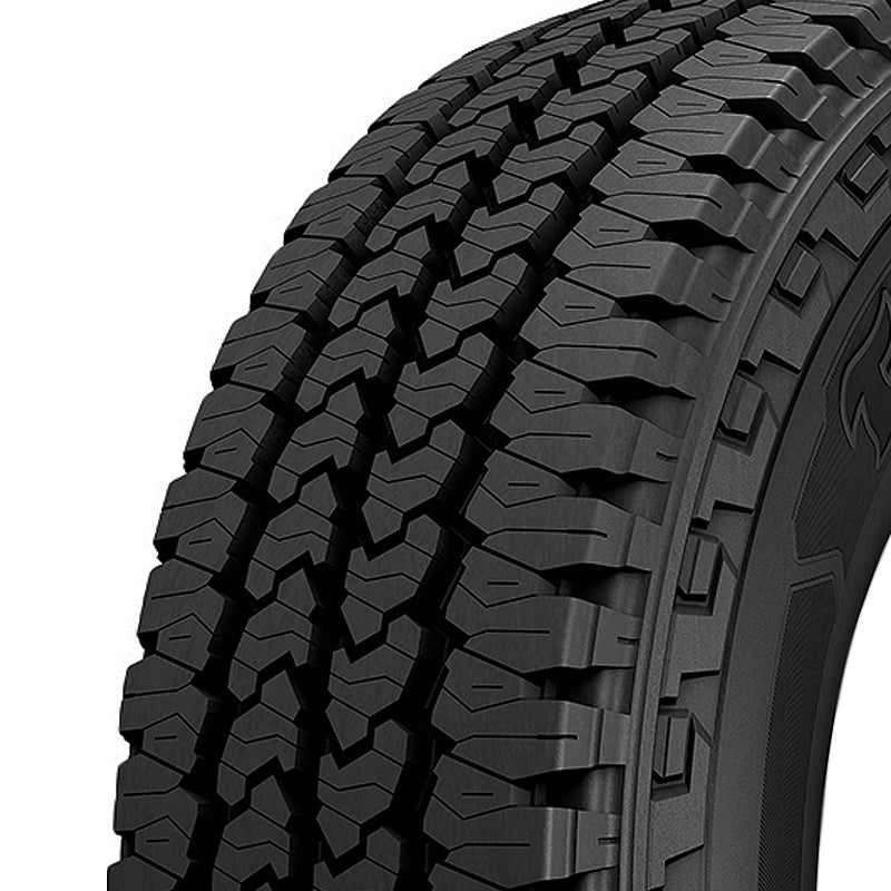 The Firestone Transforce AT2 is an all terrain, all season tire manufactured for light trucks. The tire promotes exceptional all weather traction. The special deeper tread features and the large tread blocks increase the dry, wet and winter weather road gripping ability. The tread elements firmly grip the road surface, even in winter weather, to ensure constant road contact. The deeper tread grooves improve the wet and winter weather traction as the three circumferential grooves and the multi-sipe detail actively disperse water and slush from below the footprint. This prevention of hydroplaning ensures a safer driving experience in all weather.