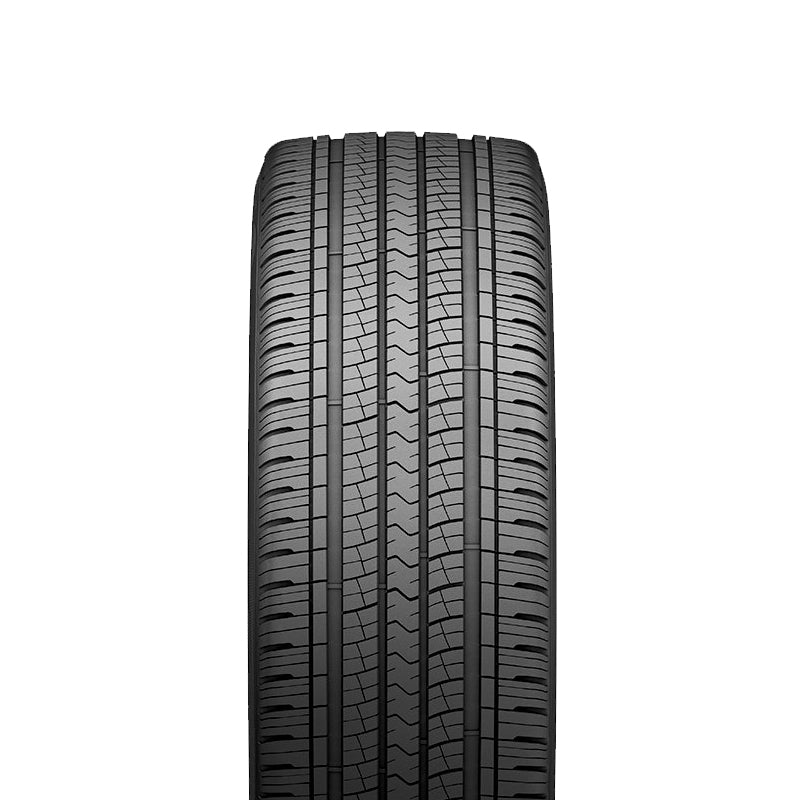 The Kumho Solus KH16 is a touring all season tire manufactured for passenger and sport utility vehicles. Kumho offers a 60,000 mile treadwear warranty with this tire. The special dual tire compound and tread pattern enhances the tire’s road gripping ability. The tire promotes excellent traction in dry, wet and in winter weather. The tread pattern features multi-siped, four circumferential grooves that actively avoid hydroplaning situations by eliminating water from below the tire footprint. The enhanced water and slush evacuation and first-rate all weather road gripping ability ensure great driving safety.