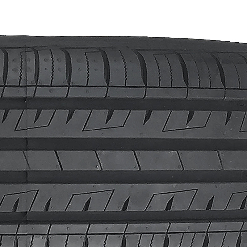 The Lionhart LH-501 is a performance all season tire manufactured for passenger vehicles. Lionhart offers a 40,000 mile treadwear warranty with this model. The model guarantees excellent all weather traction. The all season tire compound and the detailed tread design boost the dry, wet and winter weather road gripping ability. The constant road contact ensures year round traction, while the compound maintains its exceptional flexibility in all weather. The wide circumferential and smaller lateral grooves prevent hydroplaning situations by dispersing water and slush from beneath the tire's footprint. The safer performance is upgraded with the all seasonal driving safety. The tread design's road contact boosts its controllability and maneuvering. The tread pattern's three center ribs maintain constant contact with the road surface which enhances the driving stability and the steering responsiveness. As a result, the steering becomes quick and precise, while the tire is stabilized against the driving pressure affecting it. The shoulder tread block sequences also improve the cornering ability. They provide additional biting edges that firmly grip the road surface during cornering. In this manner, the tread design ensures a more secure driving experience. The LH-501's optimized tread design upgrades the tread life and the comfort levels. It keeps the tire close to the road surface and evenly distributes the driving pressure along the tread area. The equally circulated forces of acceleration, cornering and braking ensures even wear across the tire's surface, preventing irregular tread wear formations. The tread design promotes a quiet drive as the tread design channels the airwaves through the tire's footprint, without letting them come into contact with the tread elements. This, along with the closed shoulder design, decreases the road noise heard during the drive.
