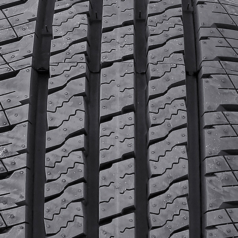 The Lionhart Lionclaw HT is a highway terrain all season tire manufactured for SUVs and light trucks. This model comes in touring passenger vehicle sizes as well. The tire ensures an extended tread life and tire usability. The optimized ribbed tread pattern keeps the tire’s road contact at all times, which allows the tire to evenly spread out the driving pressure along the entire tread area. The equally spread out forces of acceleration, cornering and braking actively resist the formation of irregular tread wear. The longer lasting even tread wear extends the tire’s usability, making the model more cost efficient.