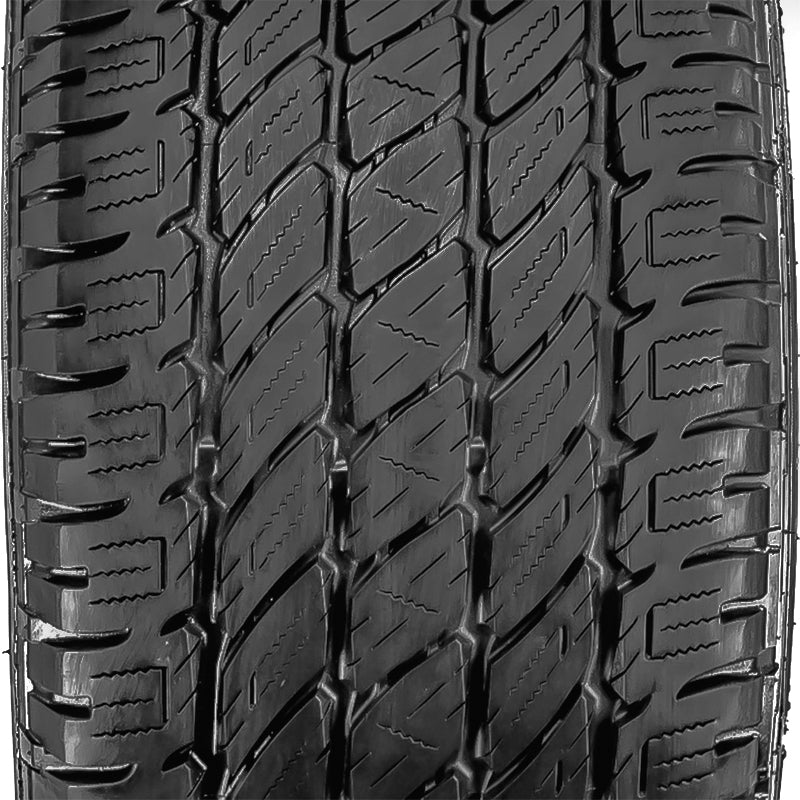 The Nitto Dura Grappler tire is a highway all-terrain tire that has long-wear life, a quiet and comfortable ride but with plenty of traction for the occasional off-road adventure. It has a heavy duty carcass for extra loads and commercial applications. It is commonly used on SUVs and pick up trucks that rarely go off-road. All the LT sizes have 10 ply sidewalls ("E" load range) with a durable tread rubber molded into a 4-rib design. The p-metric sizes for SUVs has a different rubber and a slightly quieter 5-rib tread design.With the Dura Grappler tire, like several other Nitto tires, you get two styling options with every tire thanks to the dual sidewall design - one side has plain side-lugs and the other side has attention grabbing "shark fin" shaped lugs.