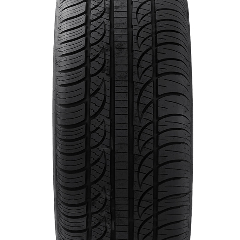 The Pirelli P Zero Nero All Season is an ultra high performance all season tire manufactured for passenger vehicles. Pirelli offers a 45,000 mile treadwear warranty with this model. The special silica-based tire compound combined with the asymmetric tread pattern improves the all weather traction. The special siping design grips the road well in dry, wet and even in light winter weather. The wet weather traction and hydroplaning resistance are further increased with the tread design’s deep, circumferential and shoulder tread grooves that disperse water and slush from beneath the tire. This ensures a more secure year round road gripping ability.