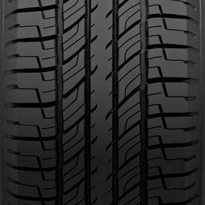 The Uniroyal Laredo Cross Country Tour is a touring all season tire manufactured for sport utility, crossover and light truck vehicles. Uniroyal offers a 60,000 mile treadwear warranty with this model. The tire promotes excellent all weather traction. The tread pattern’s open shoulder grooves increase the tire’s all weather traction and promote first-rate road gripping ability. This tread design further enhances the wet and winter weather traction. The wide circumferential grooves prevent hydroplaning by eliminating water from below the tire footprint. The better hydroplaning resistance and the increased weather traction boost the all weather controllability and handling as well. The enhanced traction maintains constant road contact which guarantees a better steering responsiveness and driving control.