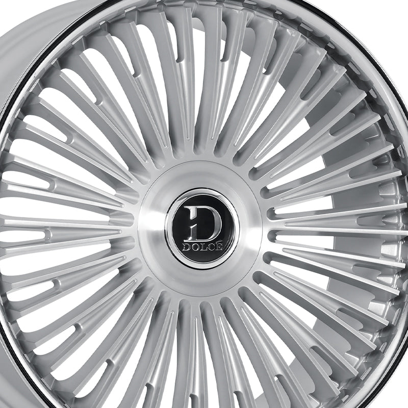 Dolce Luxury Razzo 22x9.5 6x139.7 73.1 Hub 5.96 Offset Glossy Sliver Brush Face Wheel Rim